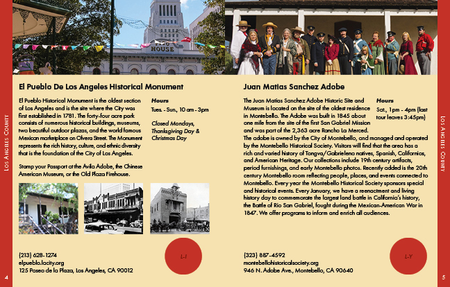 Passport 2 History, operated by the Leonis Adobe Museum, unites the sites, collections, experiences, and organizations that tell the story of Southern and Central California and its people. The program features 85 historic-cultural institutions, including major California historic sites, cultural centers, and internationally regarded museums.